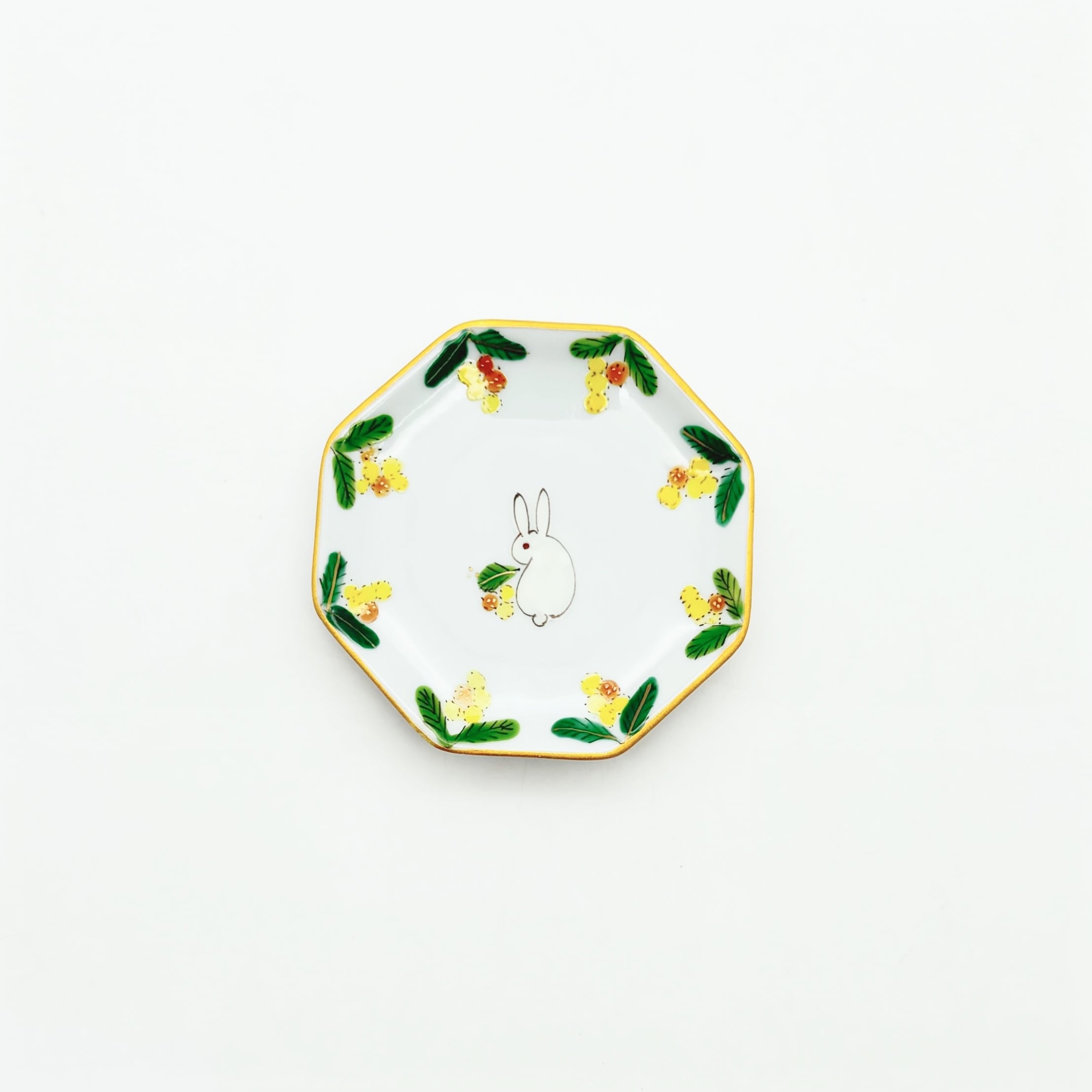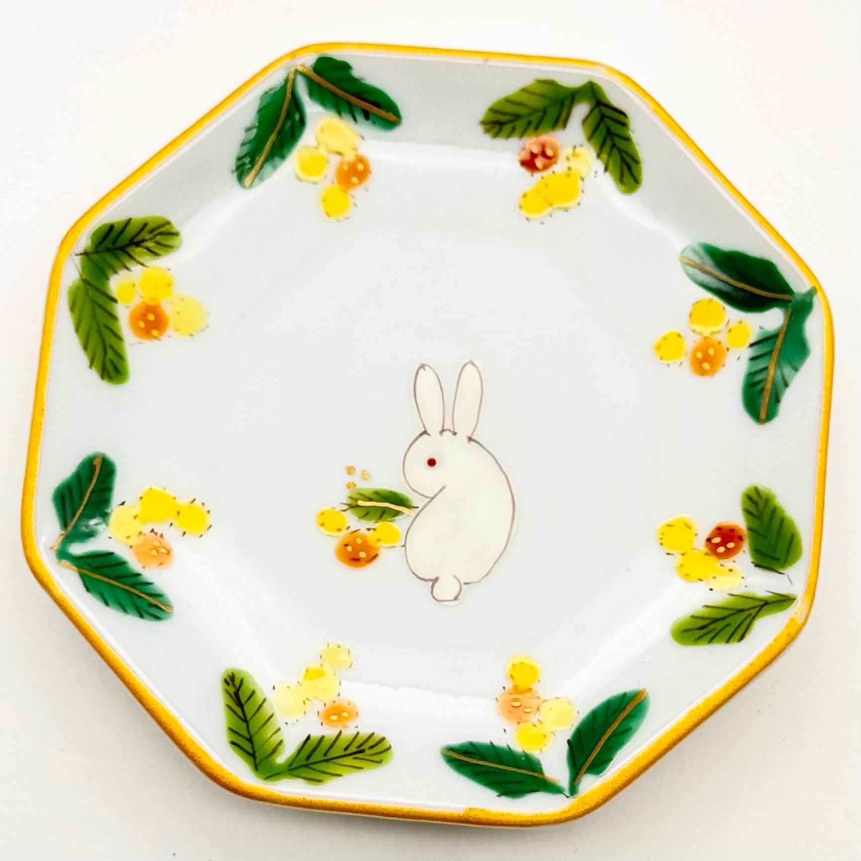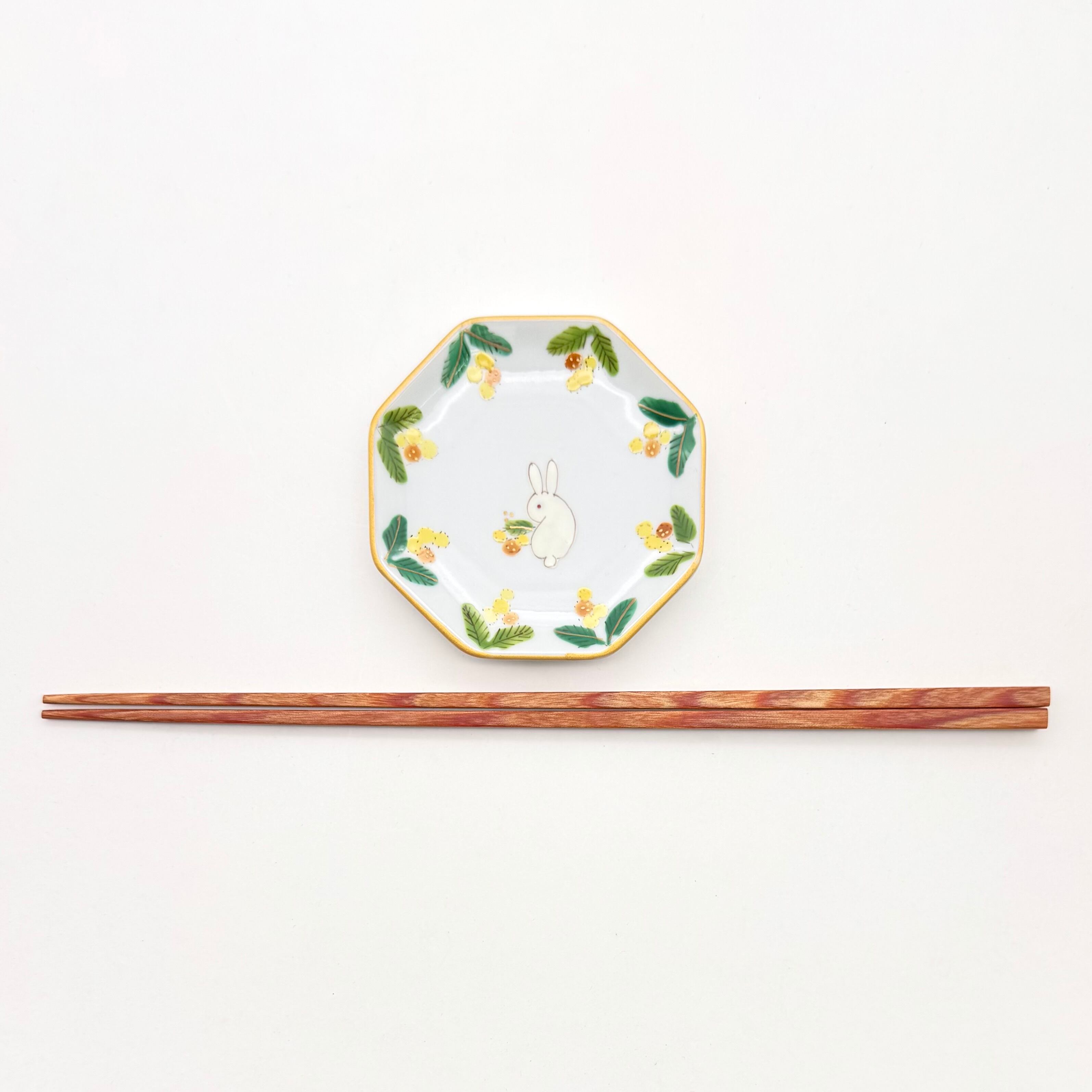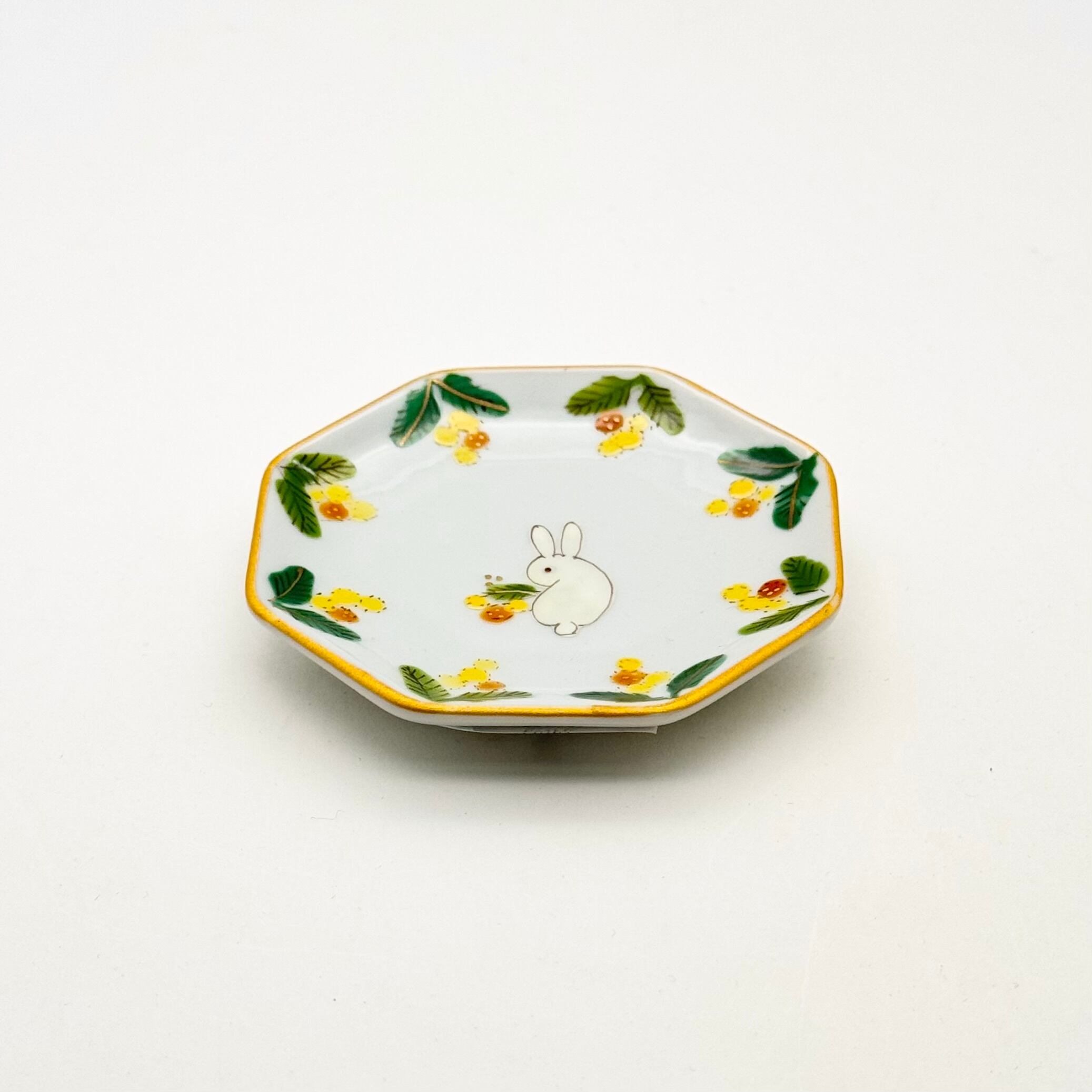 【下見】131. うさぎミモザ ミニ八角皿《曽我部治子》