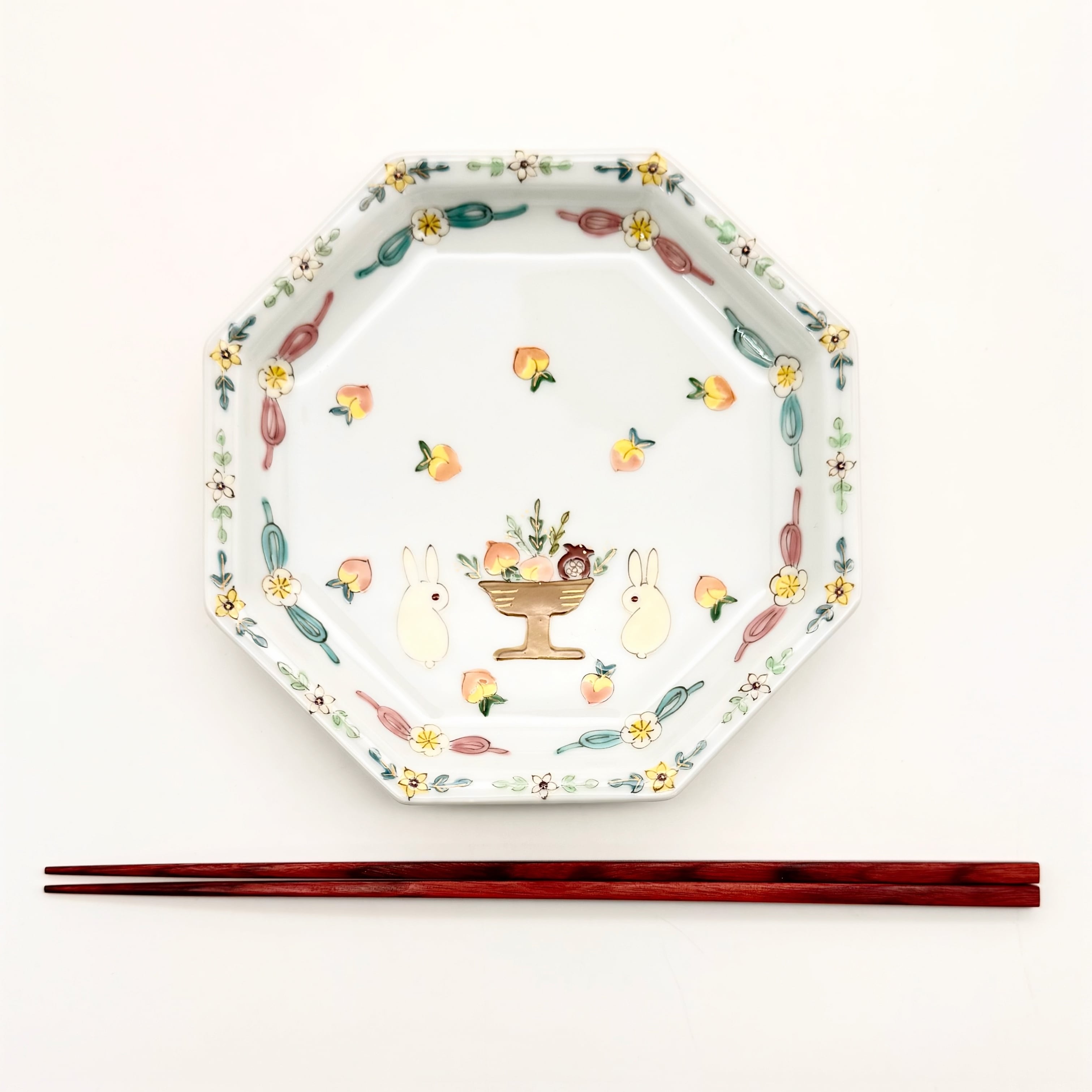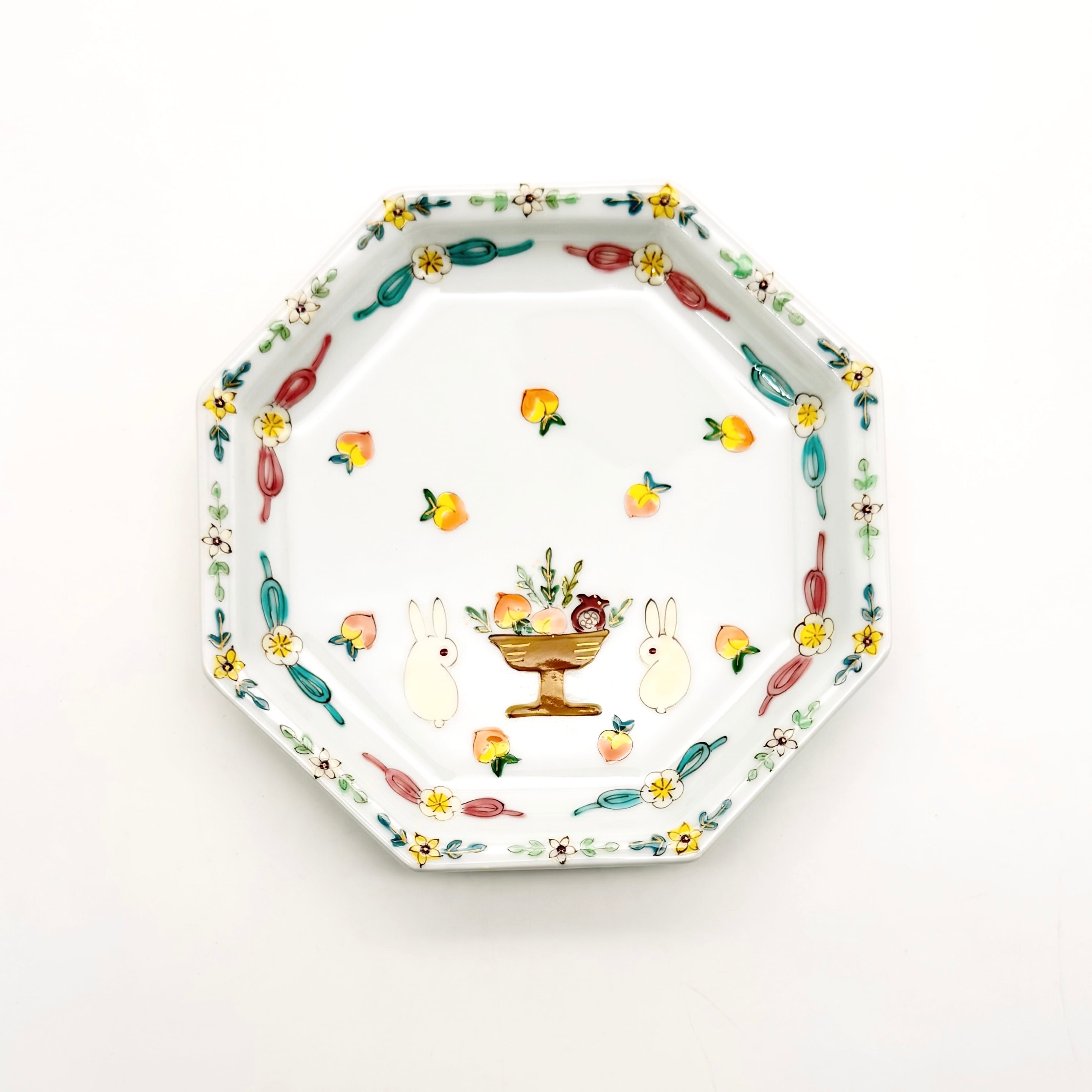 【下見】16. うさぎと桃 八角皿 中《曽我部治子》