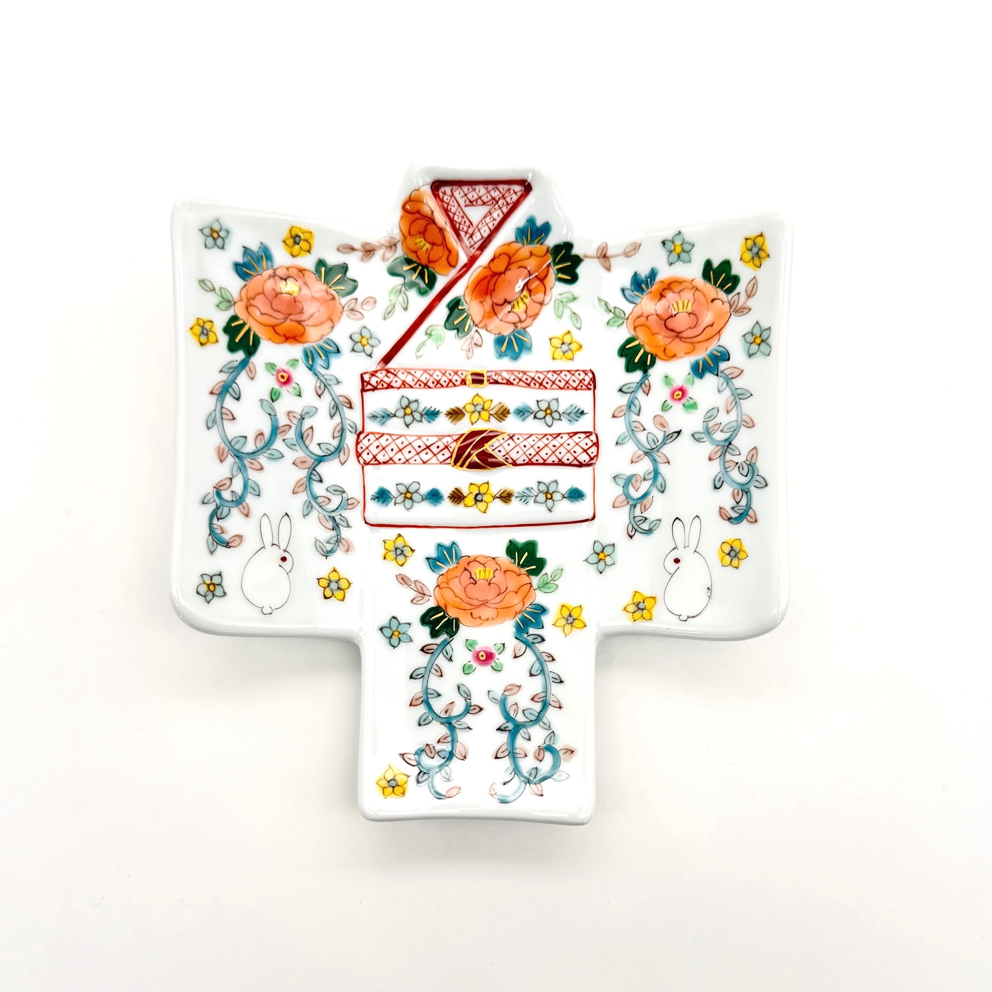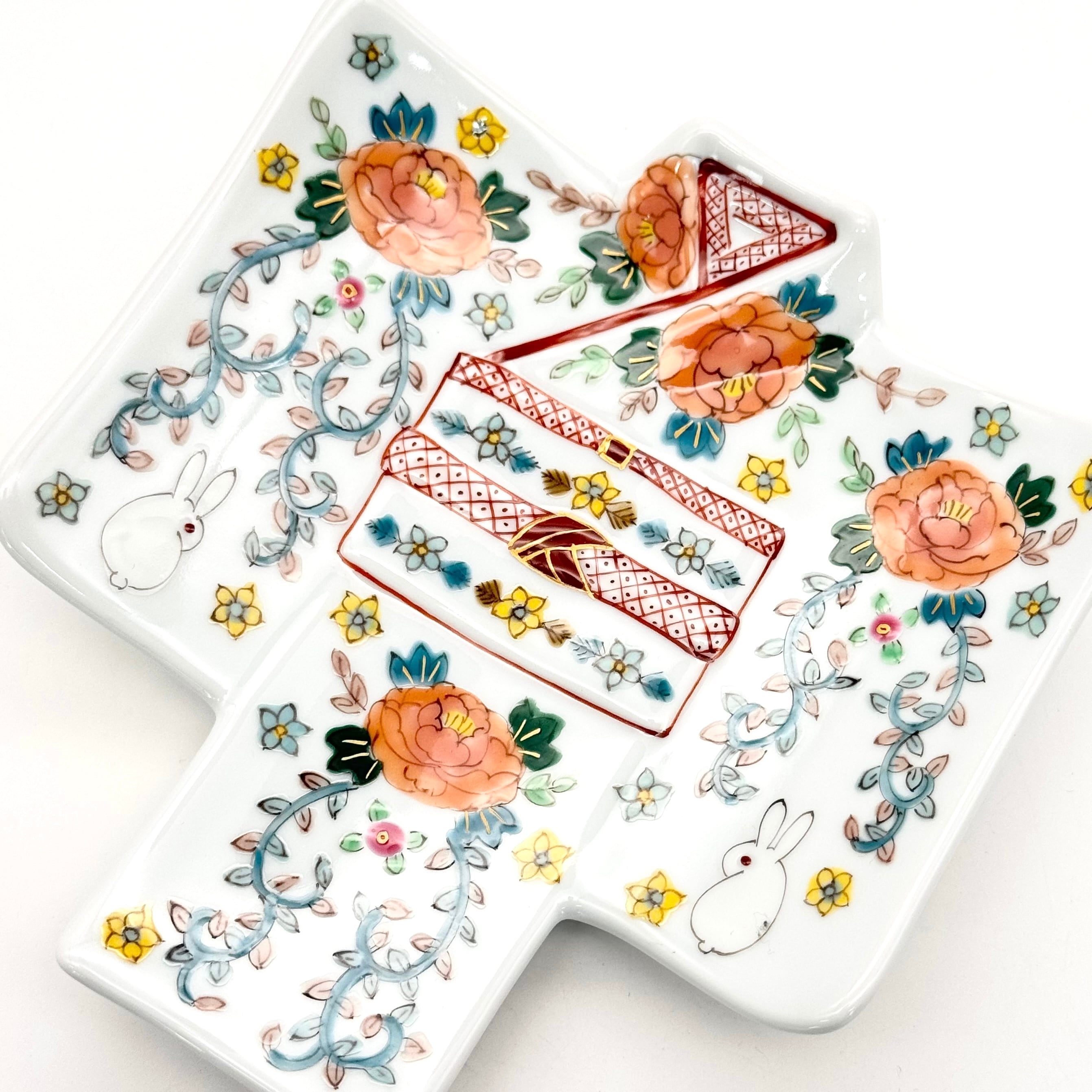 【下見】35. 牡丹とうさぎ 着物銘々皿《曽我部治子》