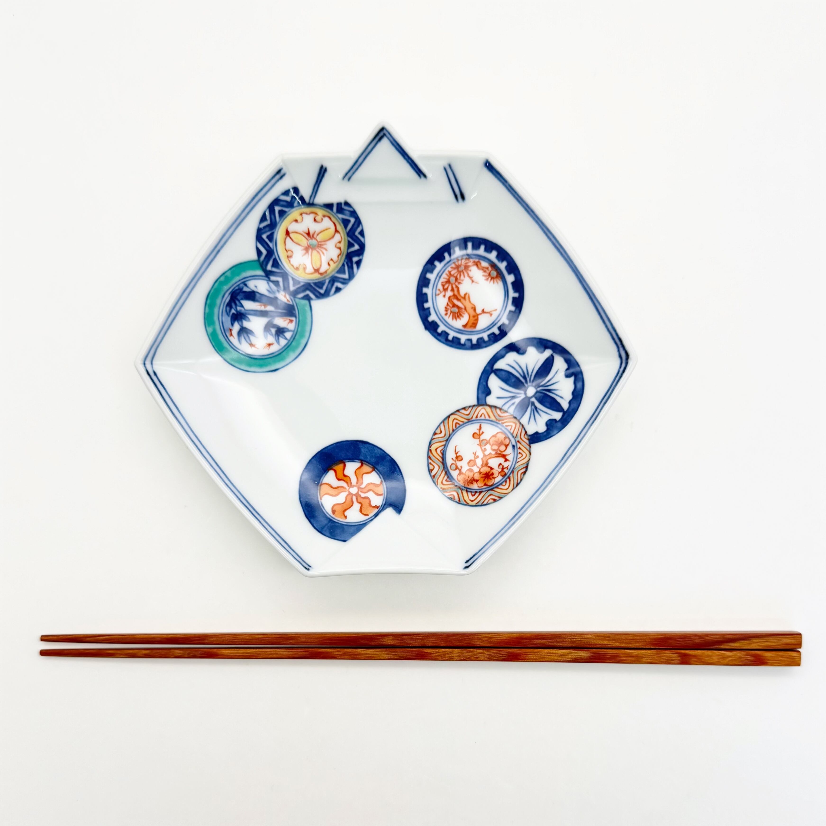 染錦丸紋地文 折紙型銘々皿