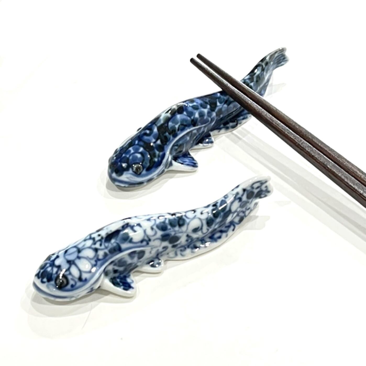 染付で手描きされた、なまずの箸置きです。