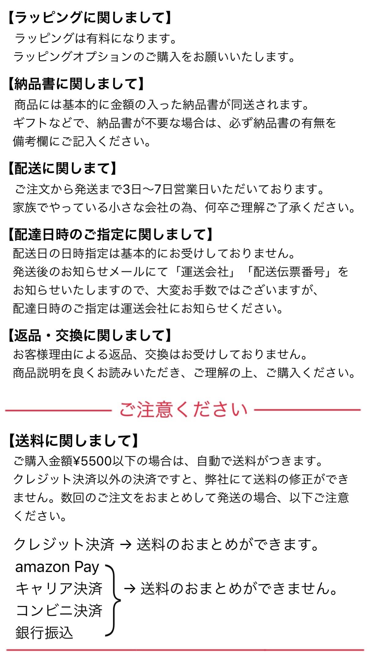 複数購入の際は、ゴミ削減の為、商品の入れ合わせさせていただきます。