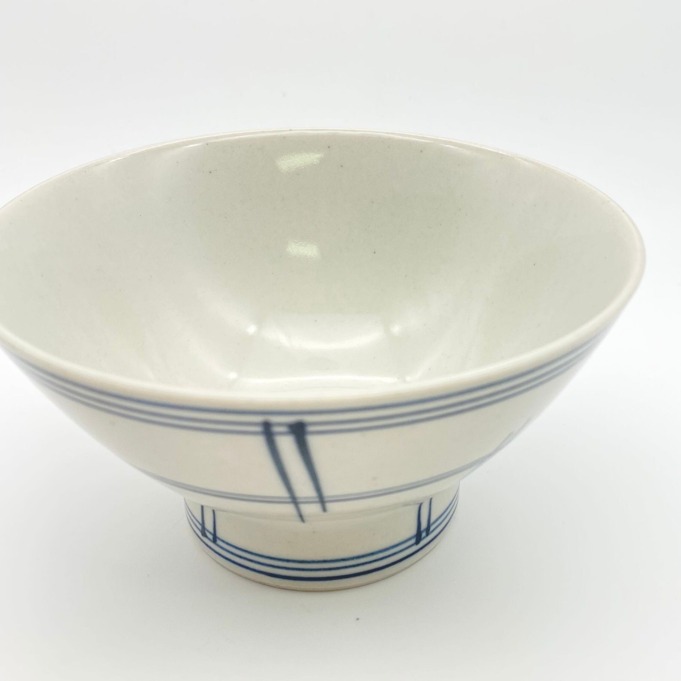【デッドストック】格子 青 ご飯茶碗 S4
