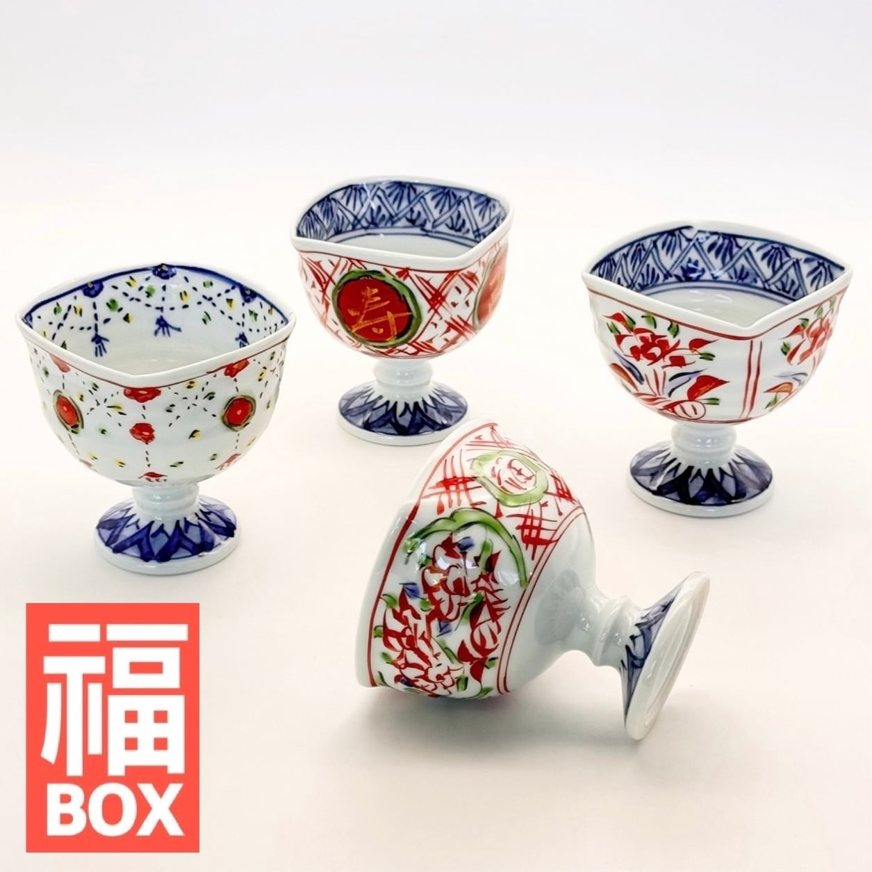【福】赤絵 高台小鉢セット