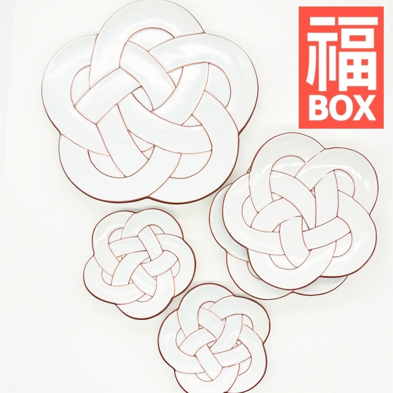 【福】朱線 梅結びセット (大皿・銘々皿・小皿)