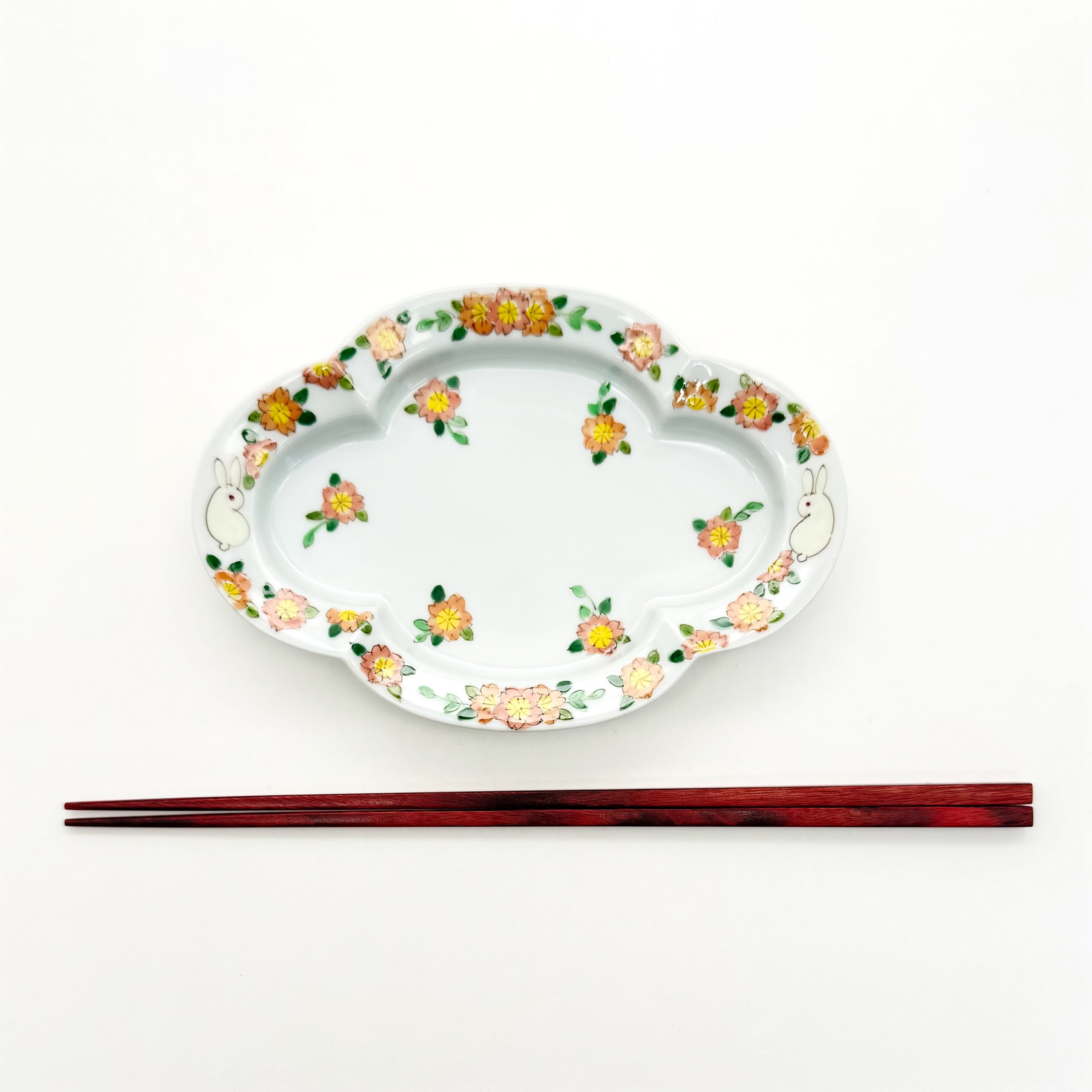 【下見】52. 桜うさぎ 木瓜皿 S《曽我部治子》