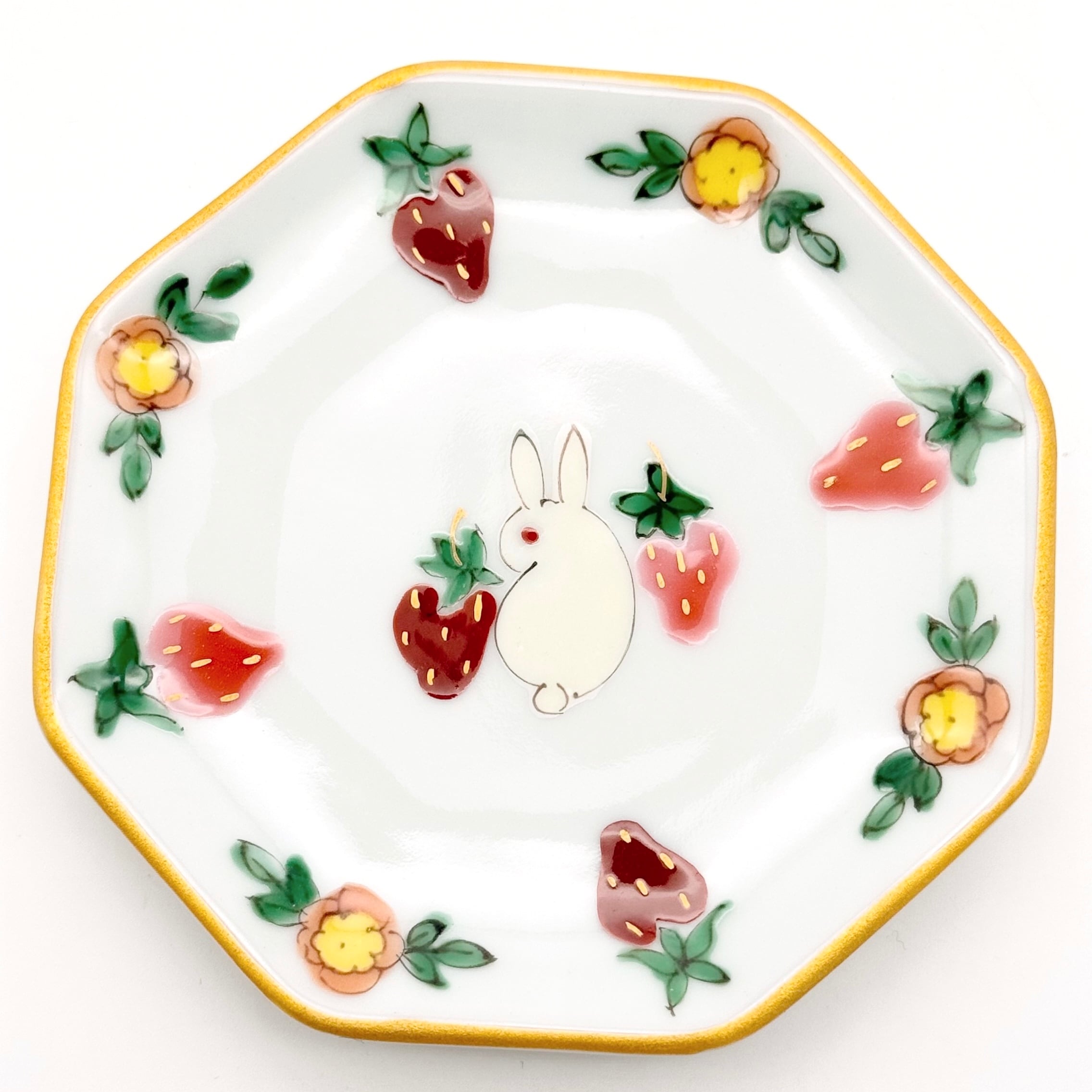 【下見】111. うさぎといちご ミニ八角皿《曽我部治子》